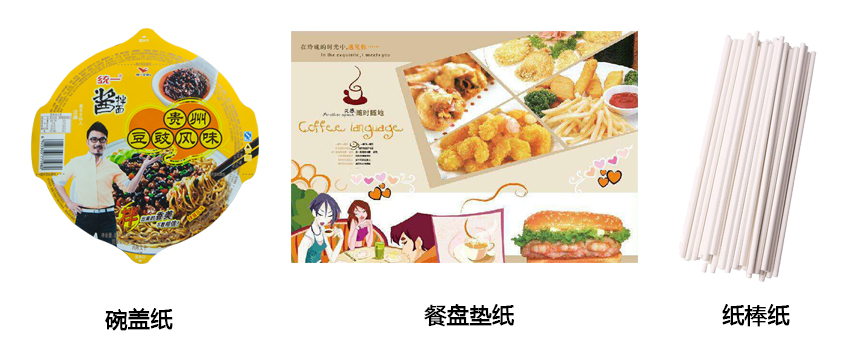 产品克重范围25-80g/m?,有白色、本色等,具有强度高,印刷效果好,防潮、防粘、防霉等特点,分内包装和外包装两大类,多用于制作食品袋、餐盘垫纸、干燥剂袋、酒精干湿包等,覆膜和铝箔后可作为桶装大碗面碗盖使用。